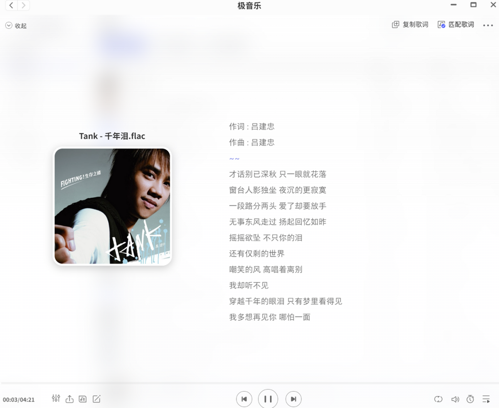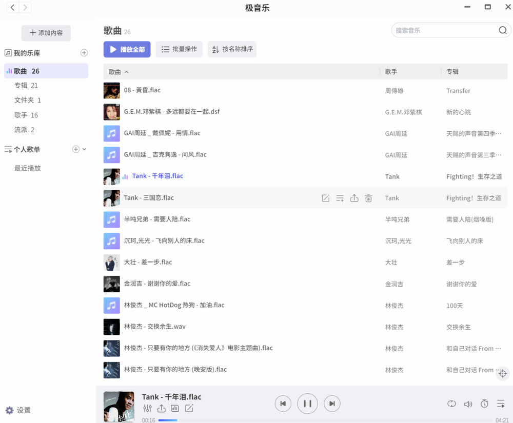 极音乐也是个非常不错的功能,用户上传的歌曲,可以在极音乐快速分类,甚至在线匹配歌词,对于管理无损音乐的用户来说,或者使用无损APP进行串流也是非常不错的选择。