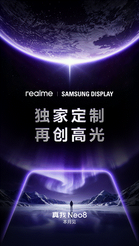 ,真我开年越级大作真我Neo8现已官宣本月发布,新的一年开启无限可能。在确认搭载第五代骁龙8旗舰芯的基础上,真我Neo8今日正式官宣携手三星显示,带来独家定制三星屏。
