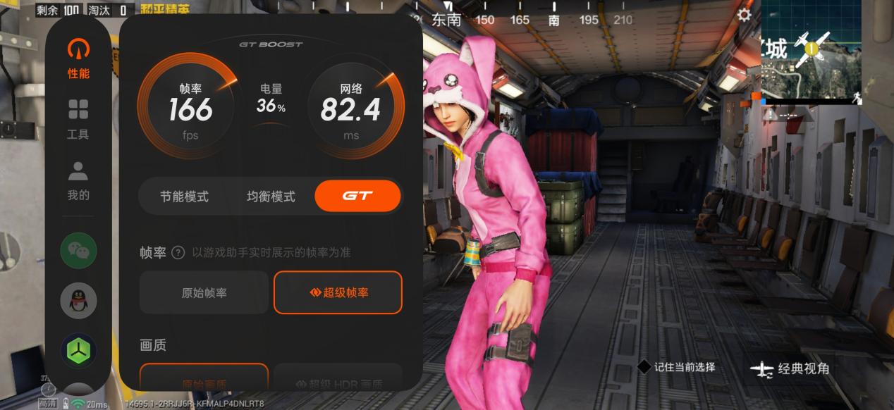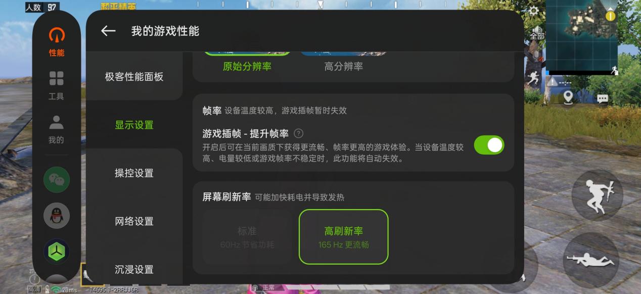 然后 ,我们选择了最高支持原生165帧的《和平精英》进行30分钟实测。