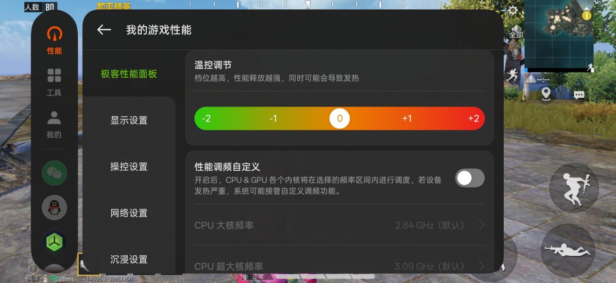 玩家可以自行调控 CPU/GPU 的频率和温控,配合 GT 性能引擎,实现极致的性能释放。