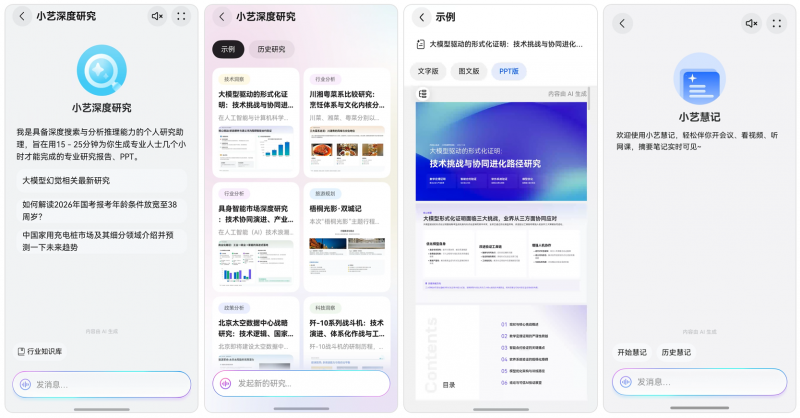 如今这些令人头疼的难题,有了新解法。会议前打开小艺慧记进行实时记录与撰写,会议后小艺慧记立马生成会议纪要梳理待办事项;需要撰写行业分析报告,打开小艺深度研究说“大模型驱动的形式化证明”,TA自动拆解需求,以“专家思维”检索全网信息、整合权威知识库,快速生成图文并茂的专业报告。原本需要几天时间的研究工作,现在二十分钟就能高质量完成,高效又省心。