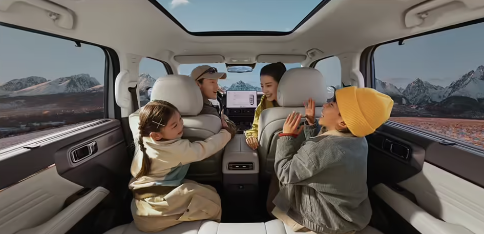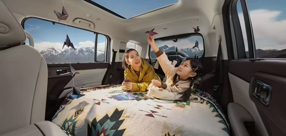 配置方面,车内提供了 5.4L 智能温控冰箱、12 扬声器音响系统(含主驾头枕扬声器)、副驾 50W 无线快充、小桌板及露营驱蚊灯等装备。前后排座椅均支持加热、通风及按摩功能。车内共设有 45 处储物空间,后备厢常规容积 669L,二排座椅放倒后可扩展至 1691L。